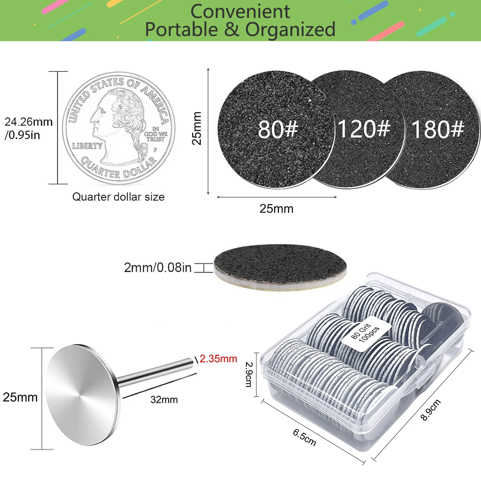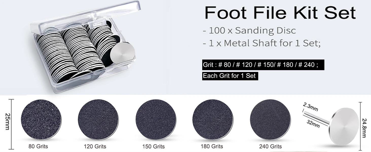 Schleifpad – 25 mm, kompakt und leicht; Metallbit – 24,8 mm x 32 mm Durchmesser.Hervorragende Arbeit und effektiver zum Entfernen abgestorbener, harter, rissiger Haut.