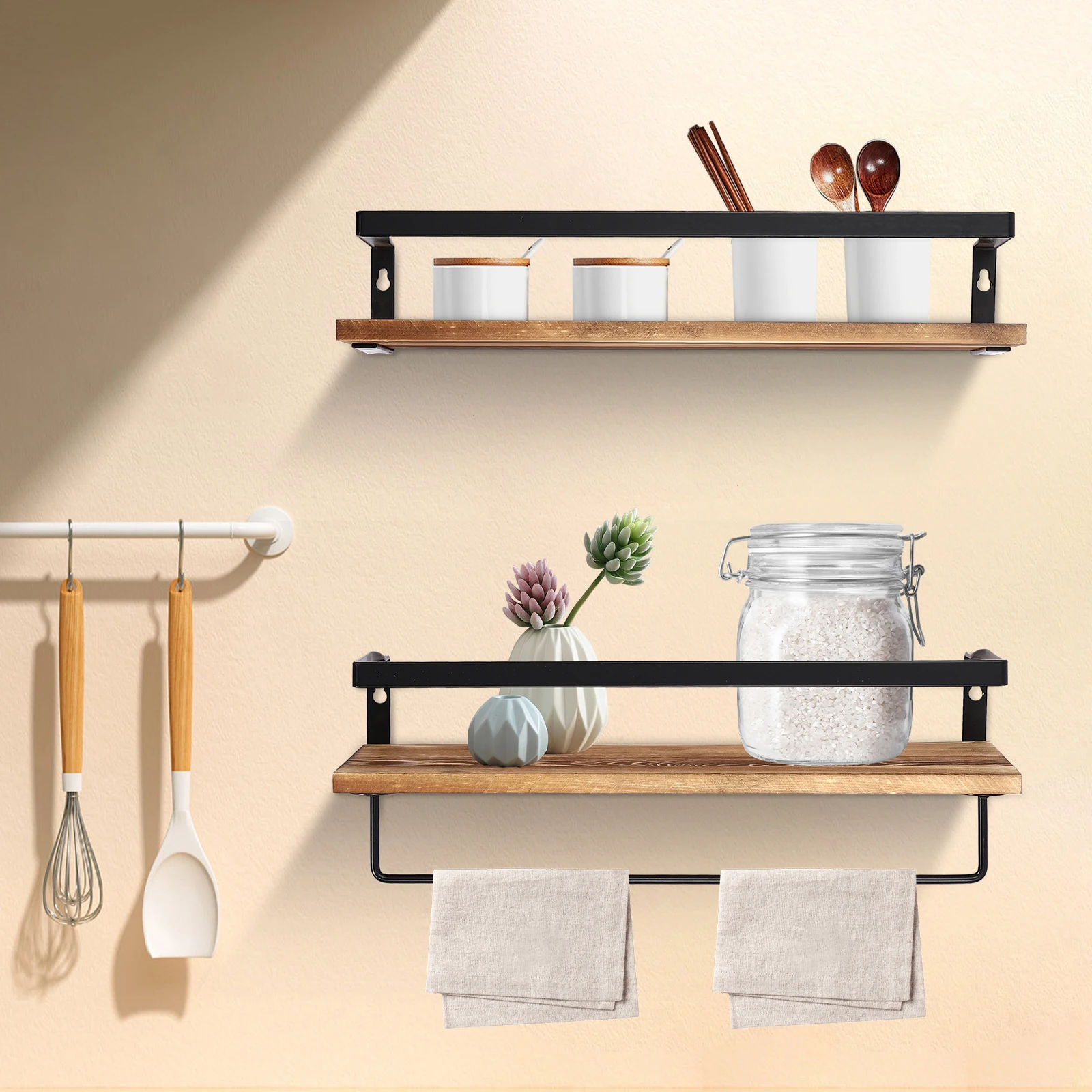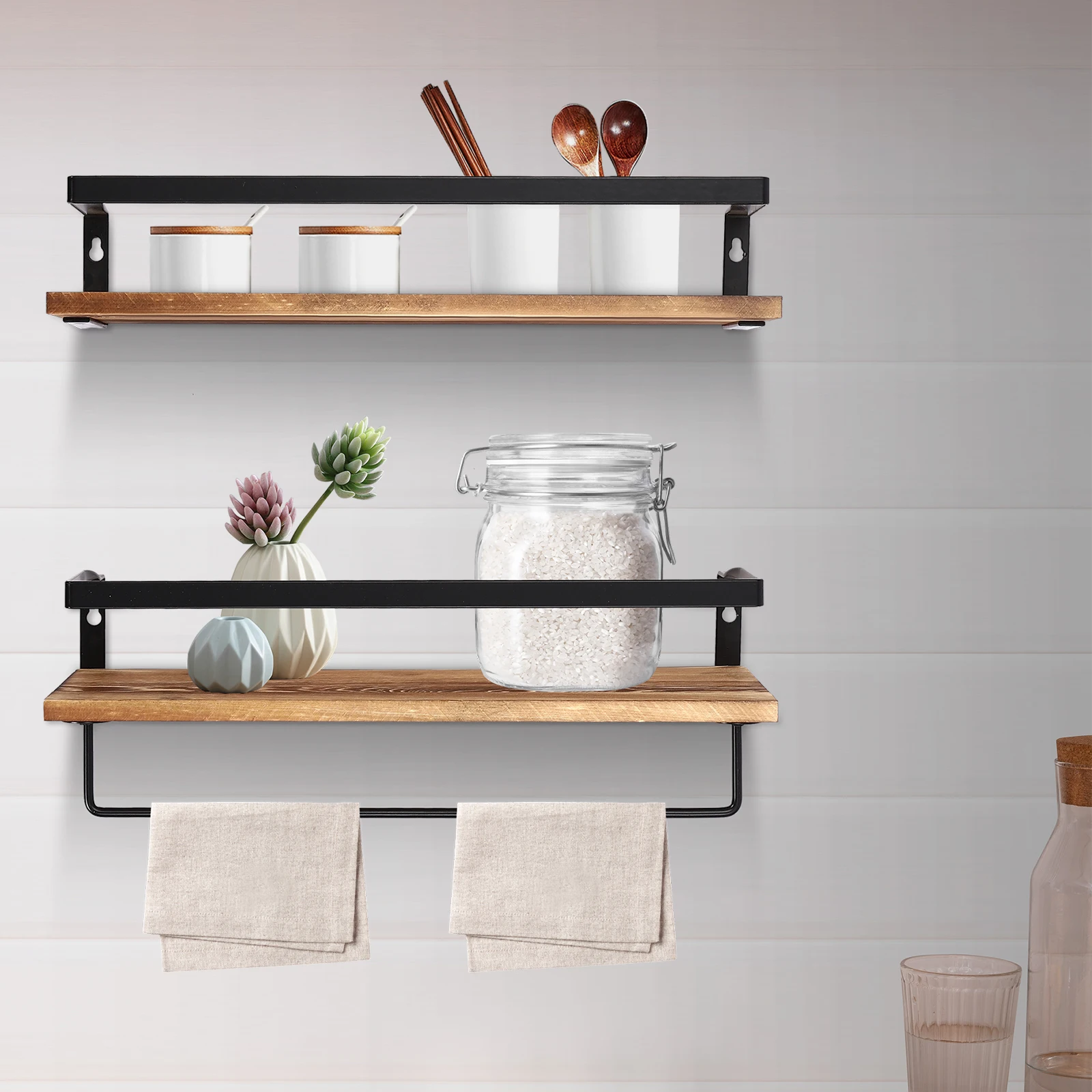 Good Appearance: The vintage-style shelves have a wooden texture and smooth lines, making them adapt to different styles of rooms and providing your house with a sense of warmth and nature.