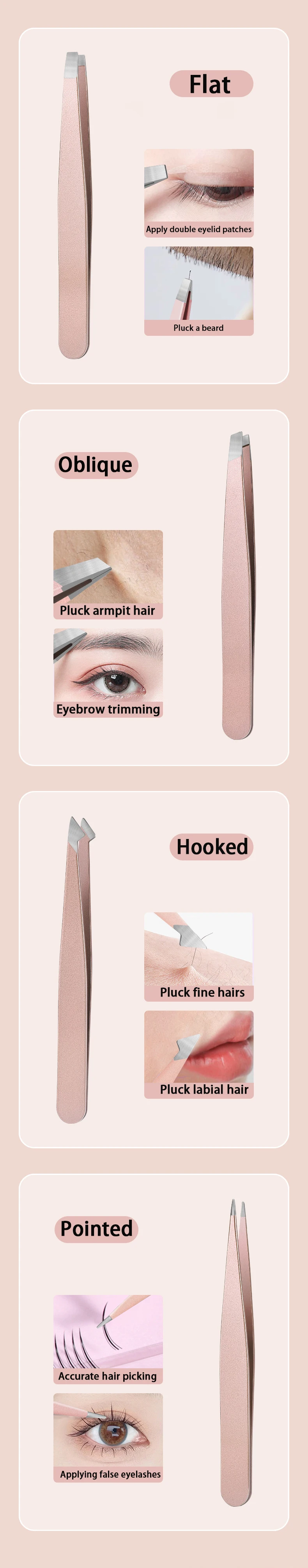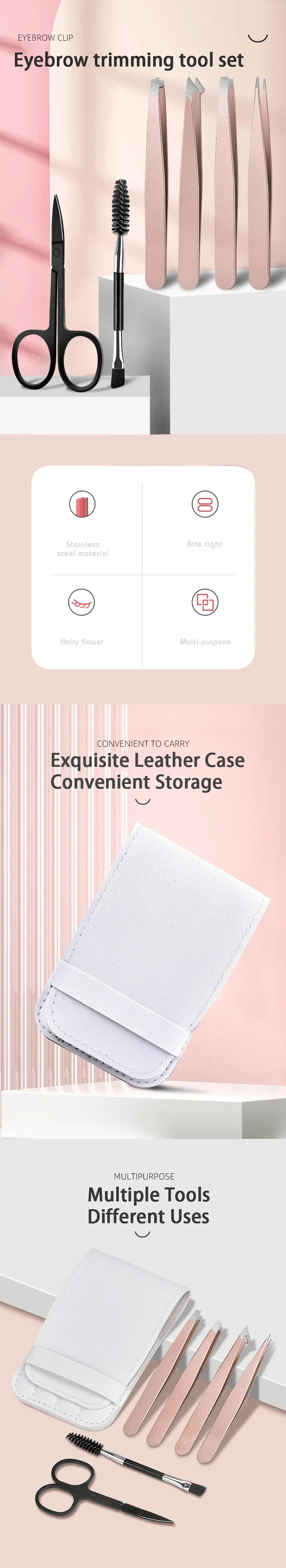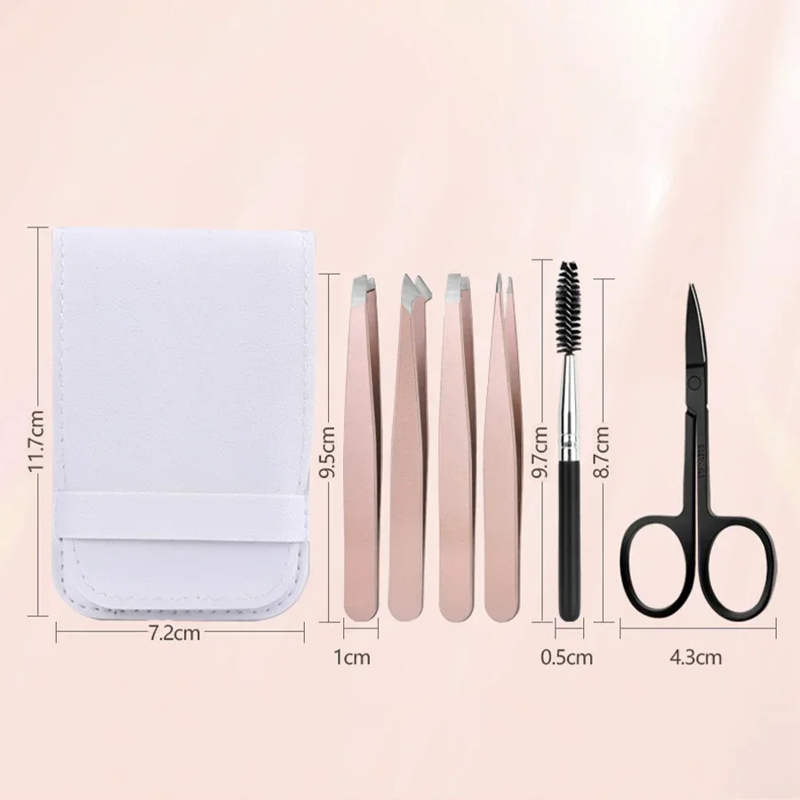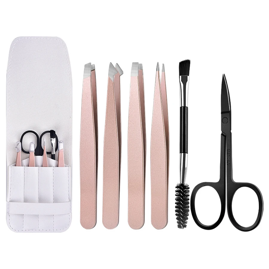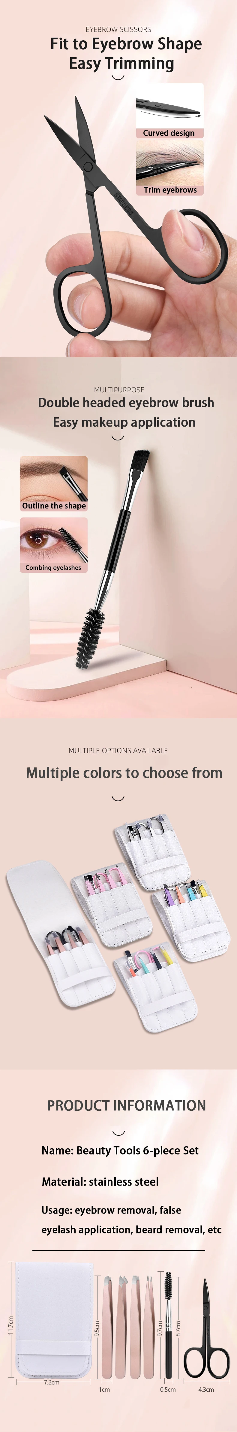 Augenbrauenpinzetten-Set, 6-teilig, Präzisionspinzette für Augenbrauen mit gebogener Schere, Zupfen, tägliche Schönheitswerkzeuge mit Lederetui