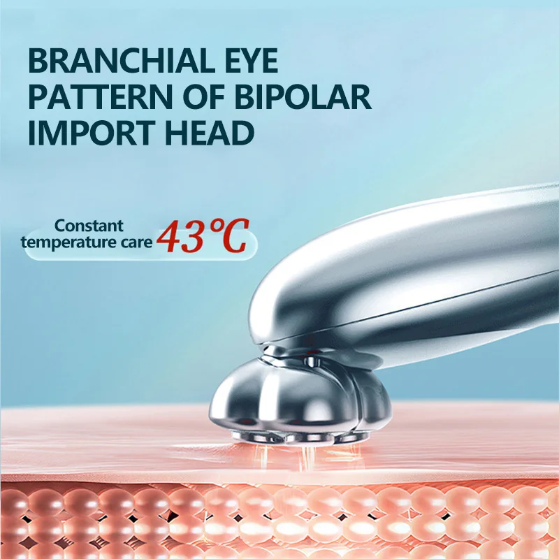 Das Instrument verfügt über Schallvibration, Mikrostrom, Rotlicht-Hautverjüngung, 42°C heiße Kompresse, und der Kopf kann um 270 gedreht werden°.Zur Verbesserung von Tränensäcken, Augenlinien und Augenringen mit Augencreme oder Serum verwenden