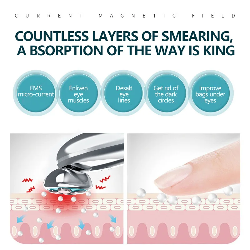 3.Drücken Sie vorsichtig auf den Massagekopf, um die Aufnahme von Augencreme oder Essenz zu verbessern. Bleiben Sie etwa 10 Sekunden lang an jeder Stelle und wiederholen Sie ihn 2-3 Mal