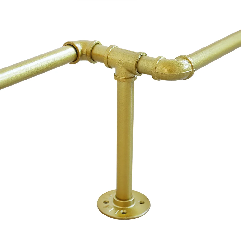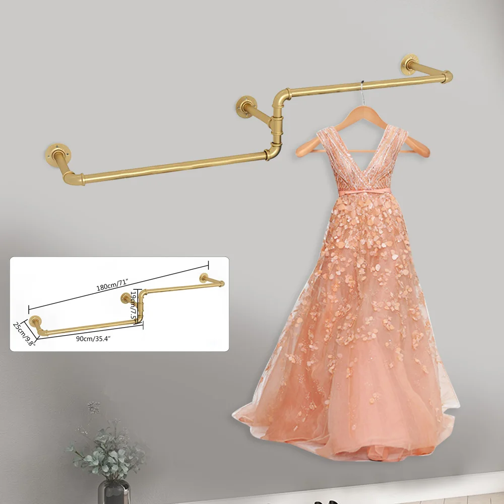 Kleiderständer, industrielles Eisenrohr, wandmontierter Kleiderständer, Hängestange für die Schrankaufbewahrung, Gold