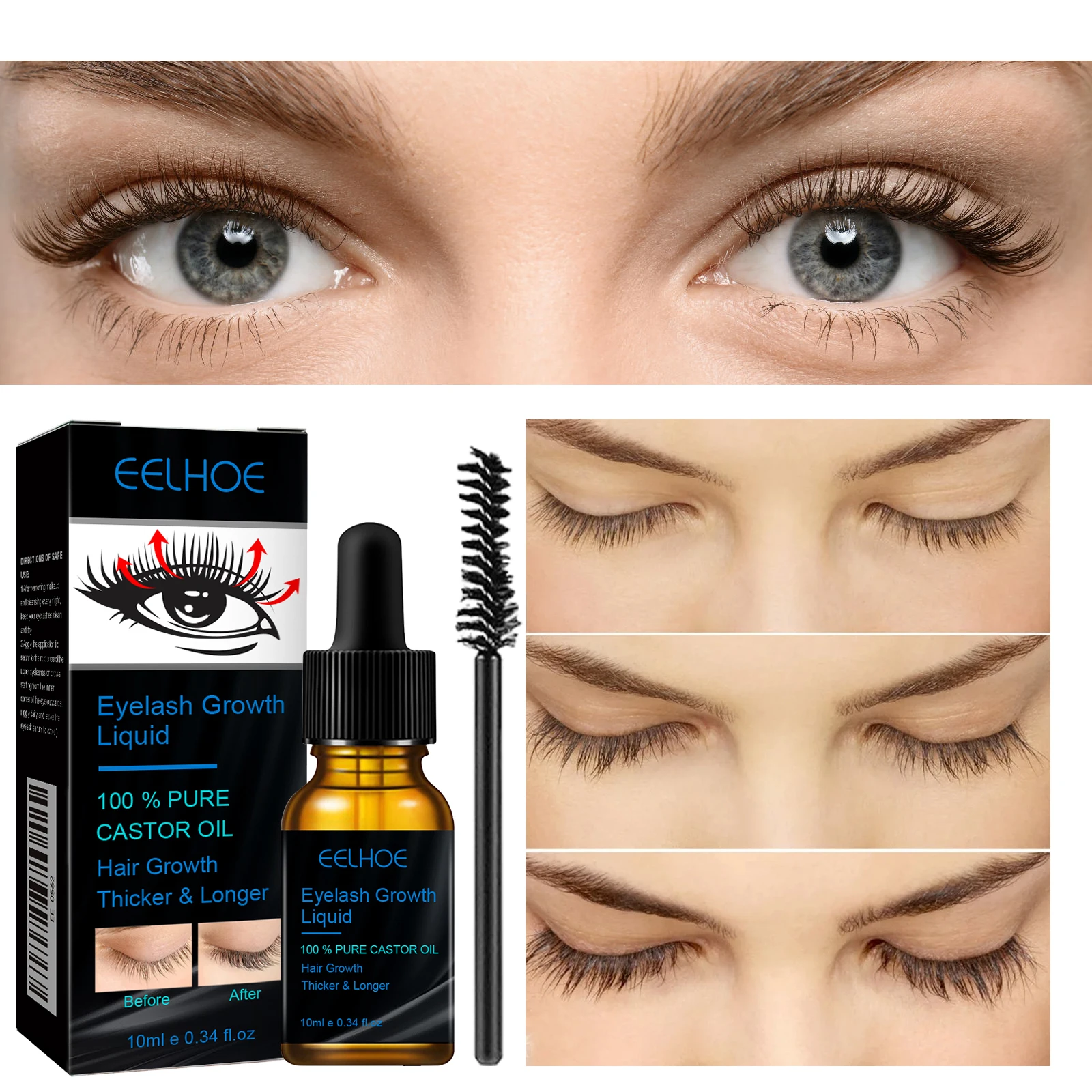 EELHOE Rizinusöl-Mascara Tägliche natürliche Wimpernkräuselung Schönes und langanhaltendes Make-up Sanfte und feuchtigkeitsspendende Pflegelösung