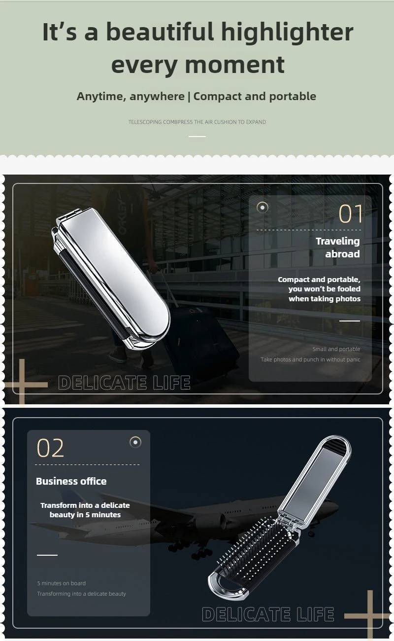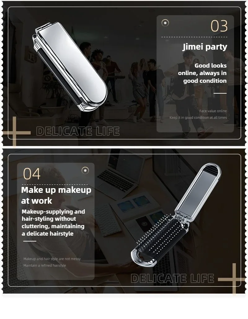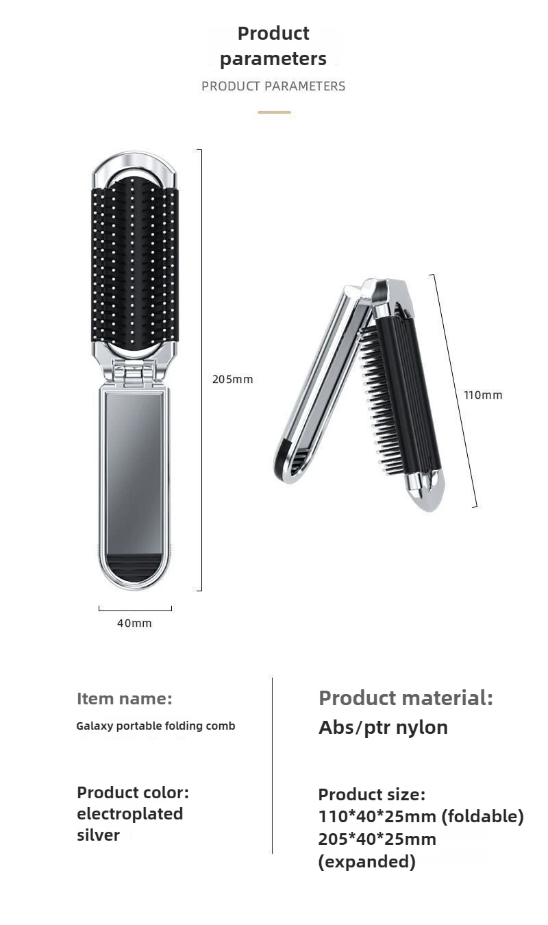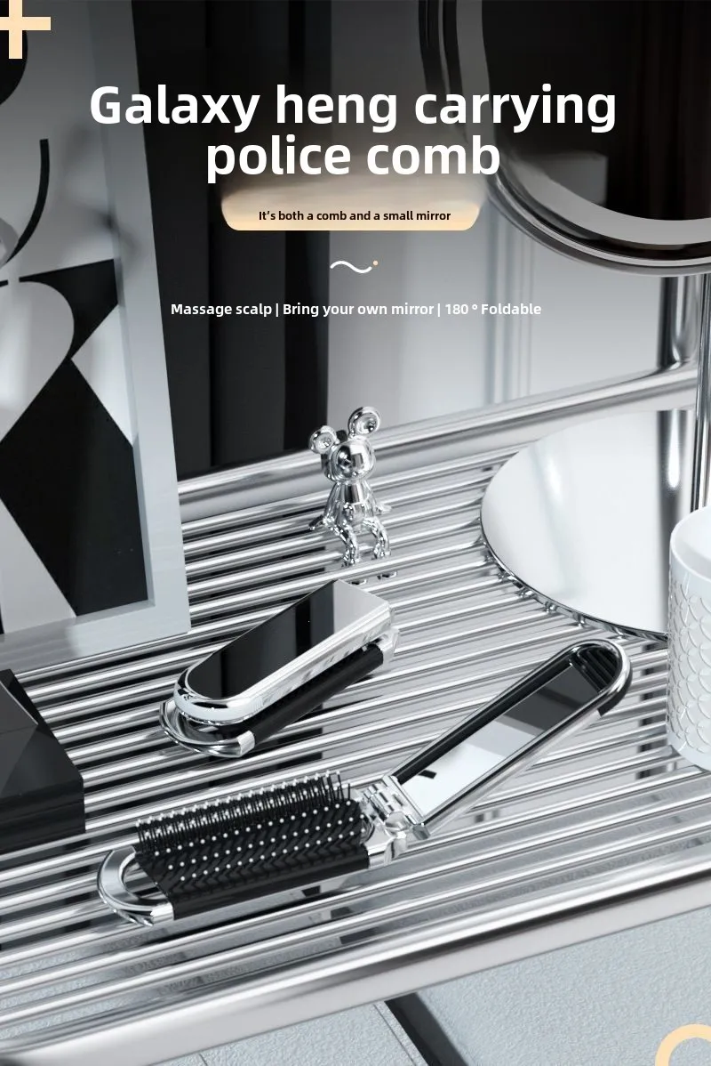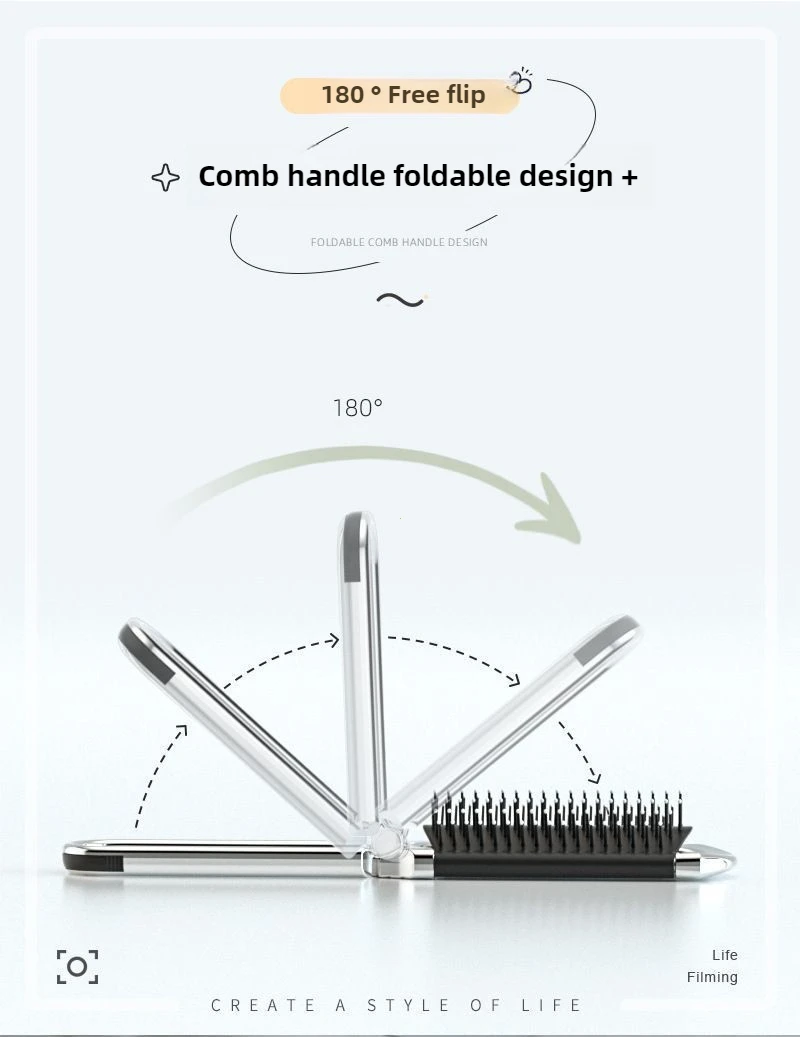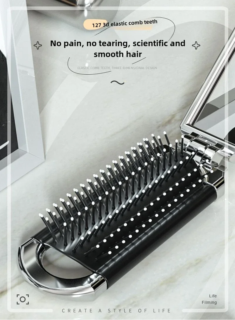 Faltbarer Haarkamm, tragbarer Massagebürstenkopf, Kopfhautmassagegerät, antistatisch, Reisekämme, Spiegel, Mädchen, Friseur-Styling-Werkzeuge