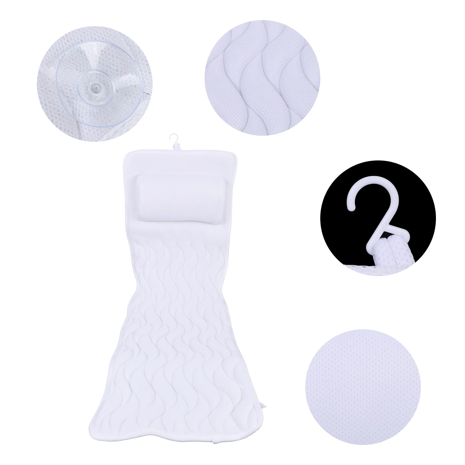 Ganzkörper-Badewannenmatte, Spa-Badekissen, mit Haken-Saugnapf, rutschfeste Badewannenkissen für Kopf, Hals, Schulter, Rückenstütze, Weiß