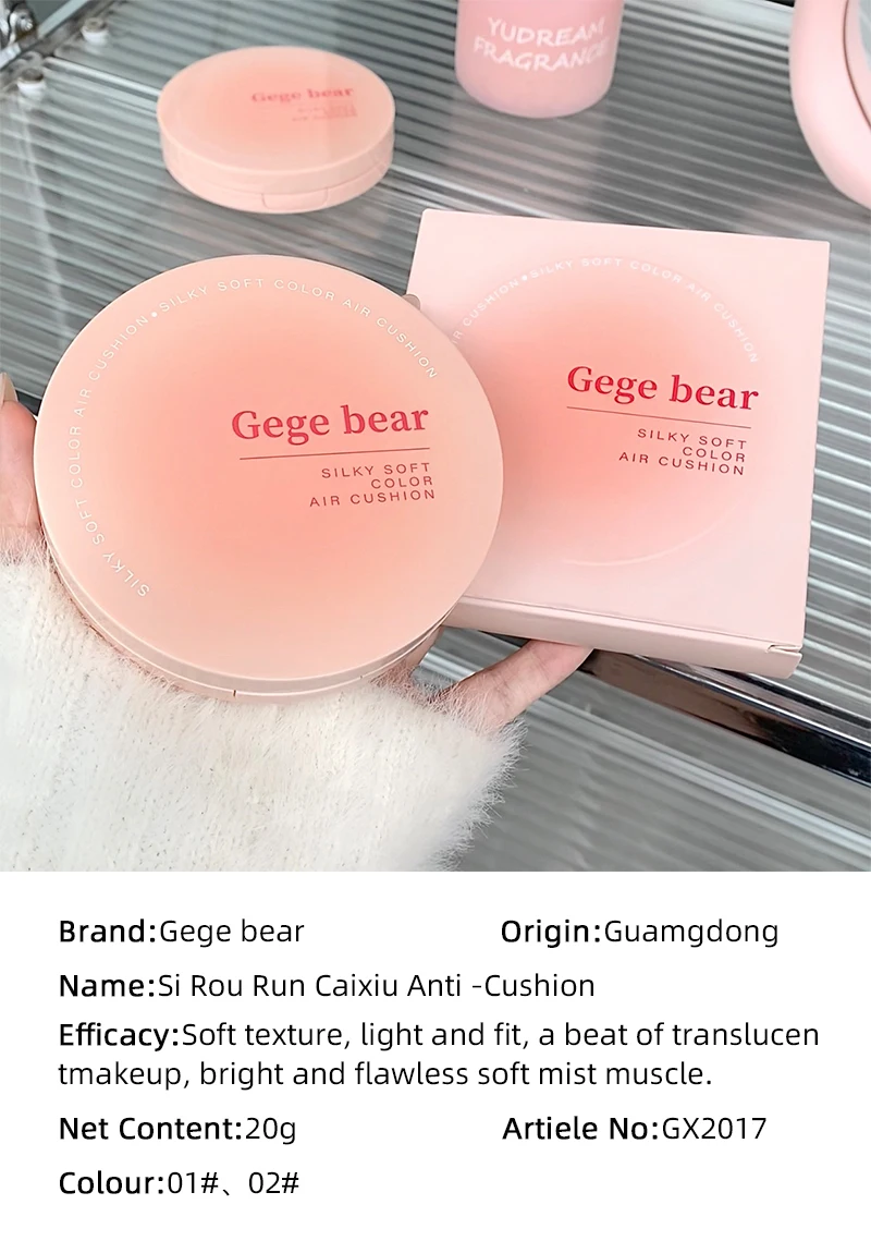 Gege Bear Milky Pink Cushion – weicher, mattierter, hautähnlicher Nude-Finish, 12-Stunden-Verschleiß, Clean Beauty, leichte Grundierung