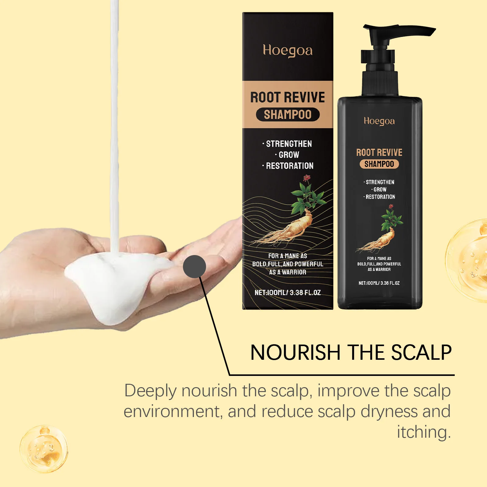 Ginseng Haarwachstumsshampoo, reinigende Kopfhaut, Haarfollikel, Anti-Schuppen-Ölkontrolle, stärkt die Haarwurzeln, feuchtigkeitsspendendes Shampoo