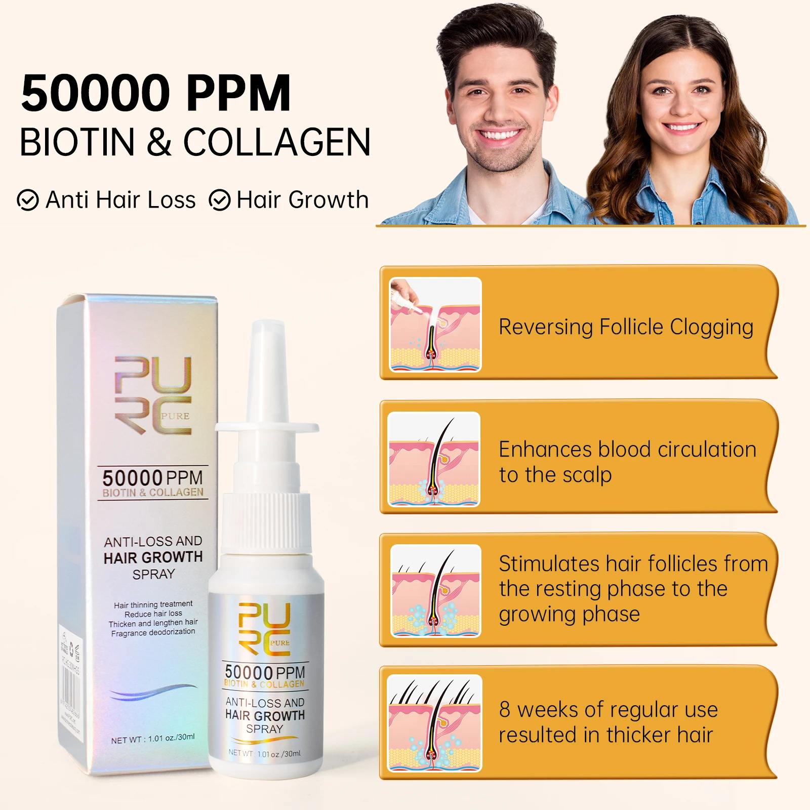 【PURC】 Anti-Haarausfall-Spray für Biotin und Kollagen
