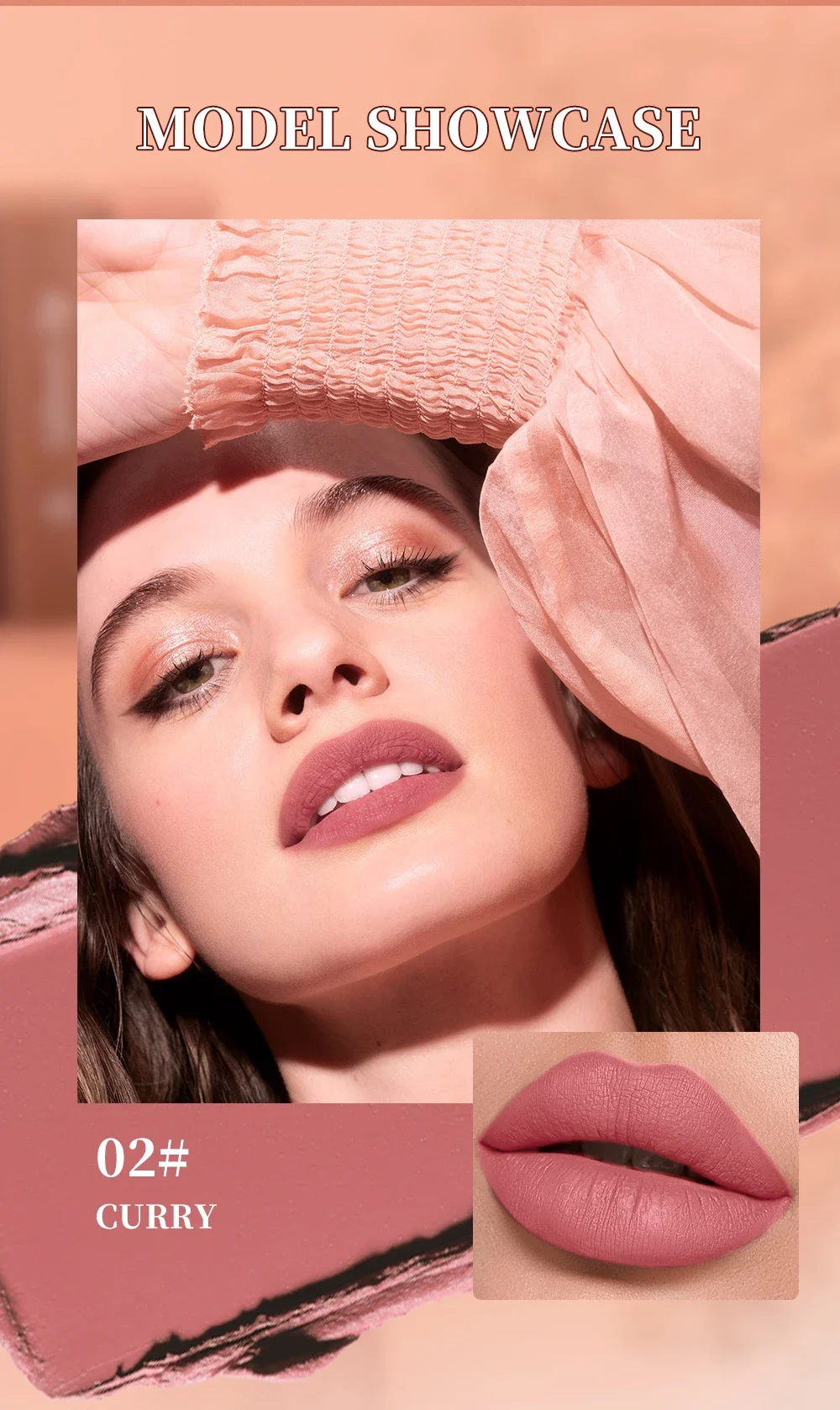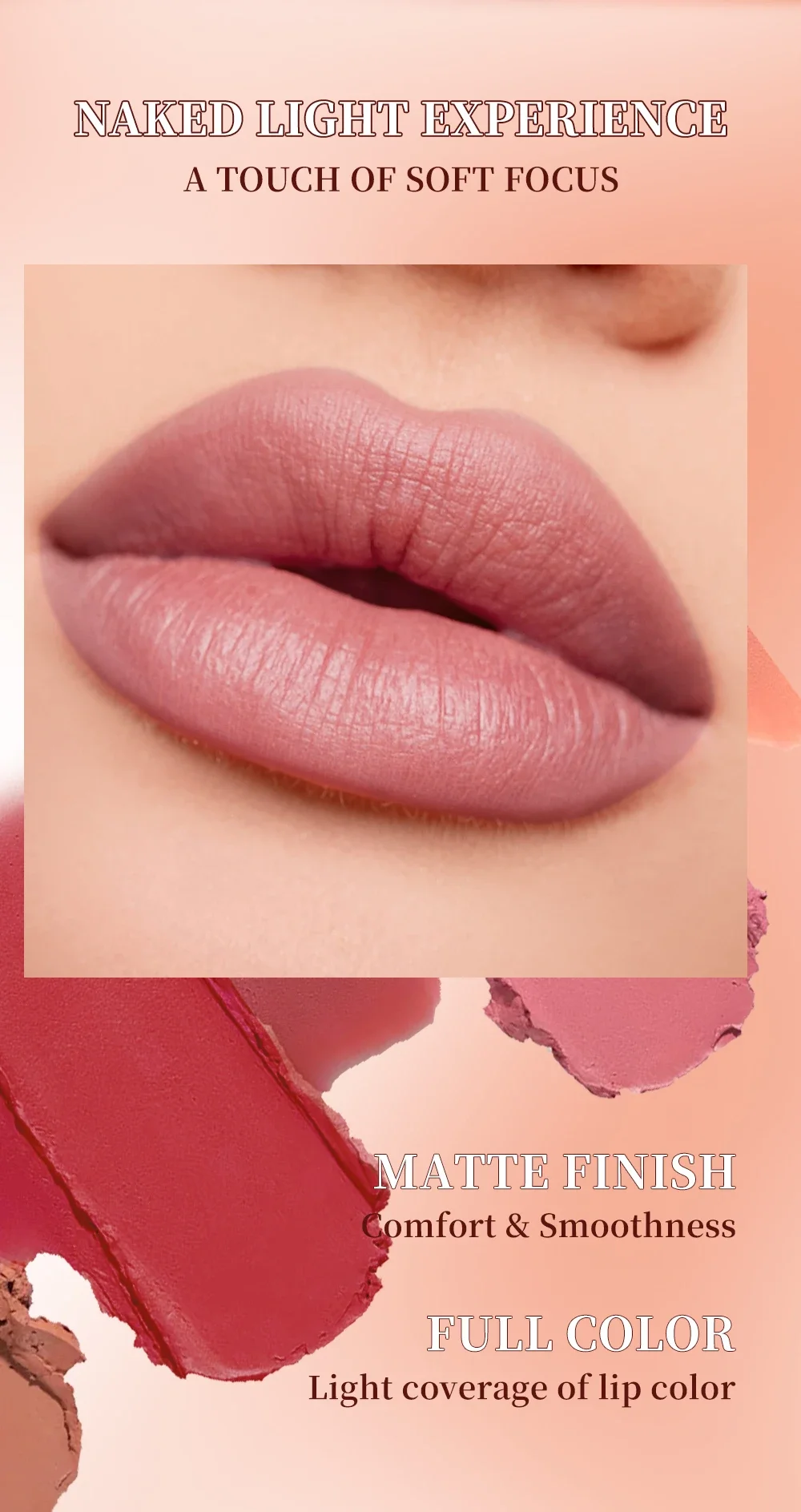 Der Lippenstift hat einen matten, matten Effekt und lässt die Lippen nach dem Auftragen natürlicher und raffinierter aussehen.