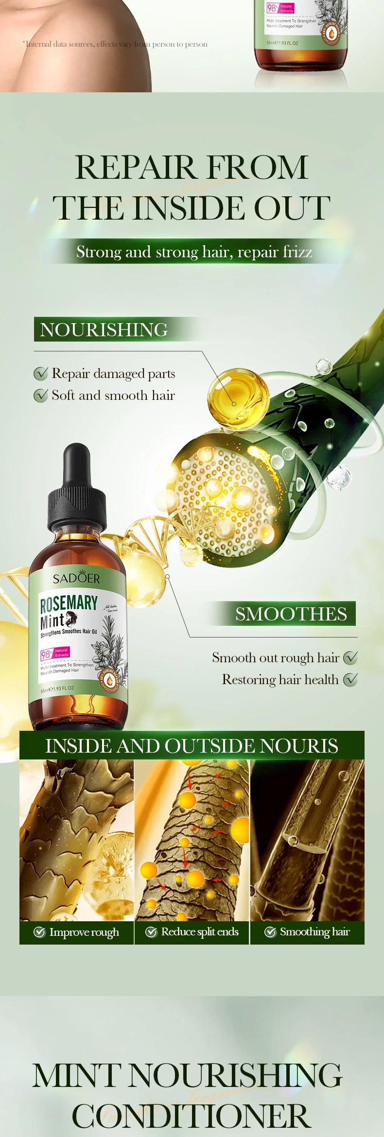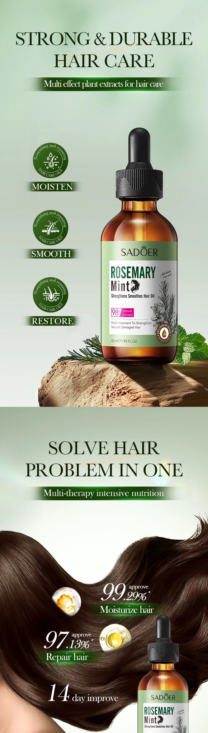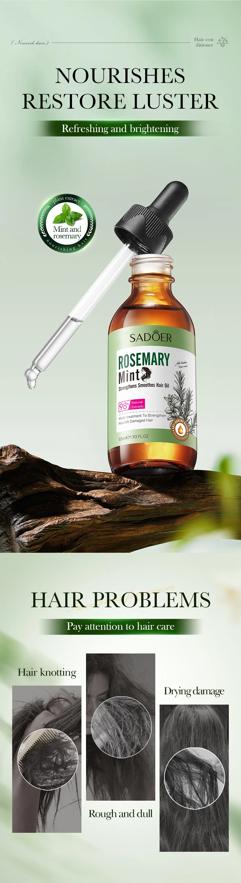Minze Rosmarin Haarpflege ätherisches Öl Hydrate Smooth Repair Haarqualität Stärken Sie die Haarwurzeln Haarpflege ätherisches Öl