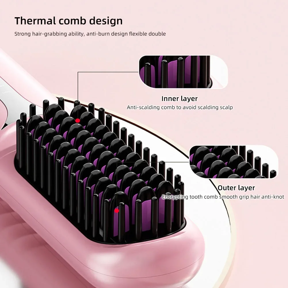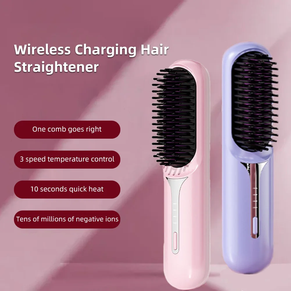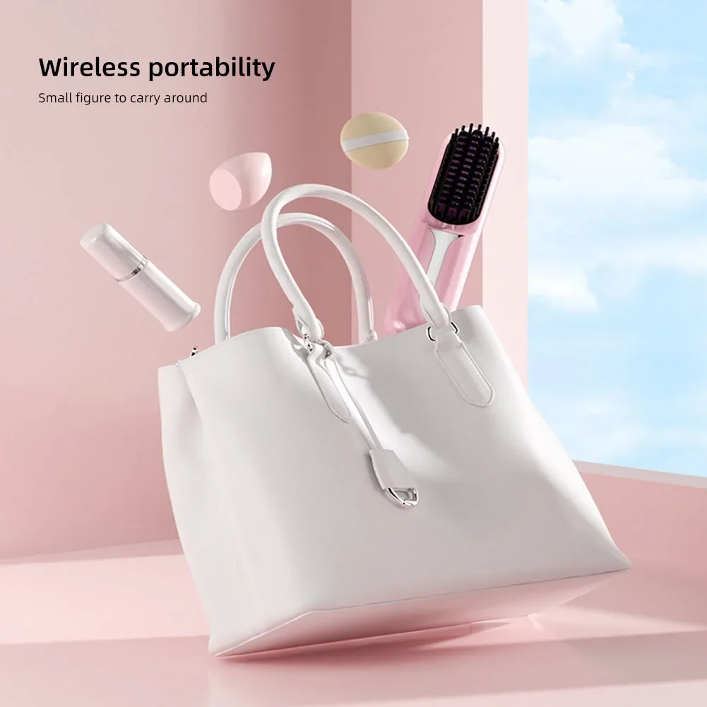 Nass- und Trockenhaarglätter, tragbarer Haarkamm, kabellose Haarglätterbürste mit schnell erhitzenden negativen Ionen für flauschige Locken