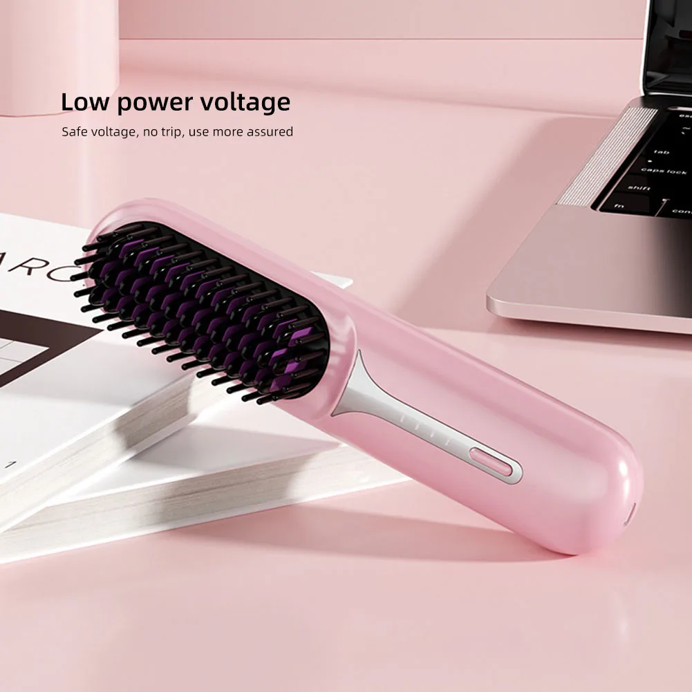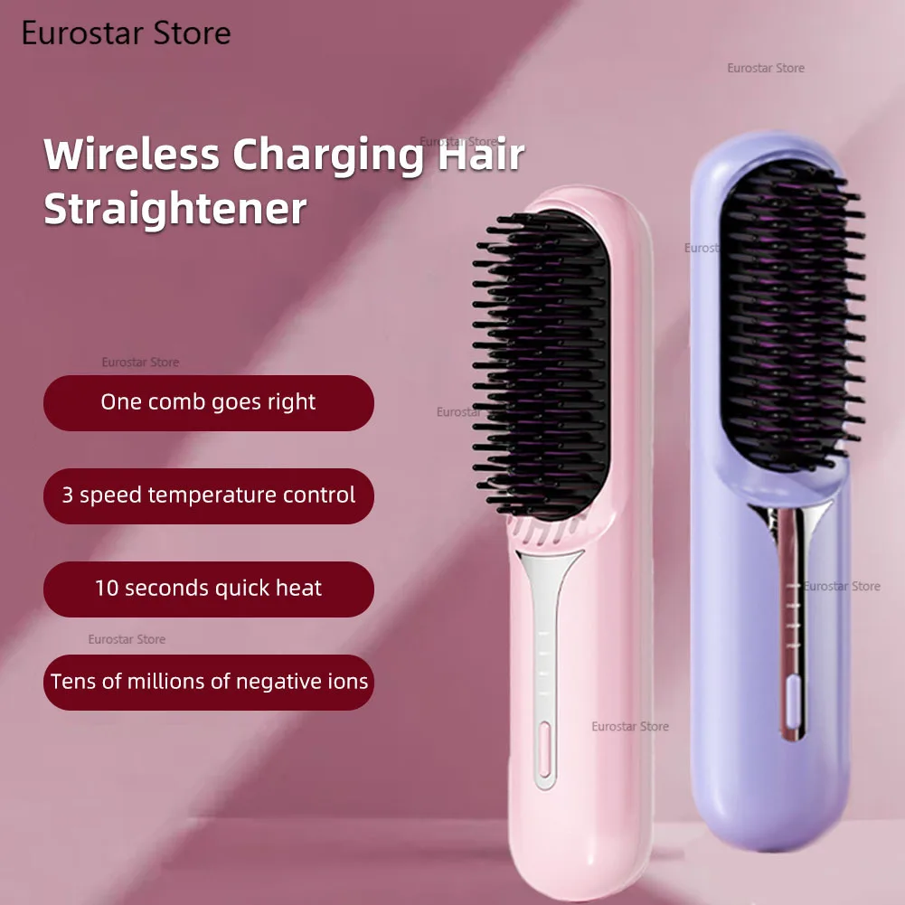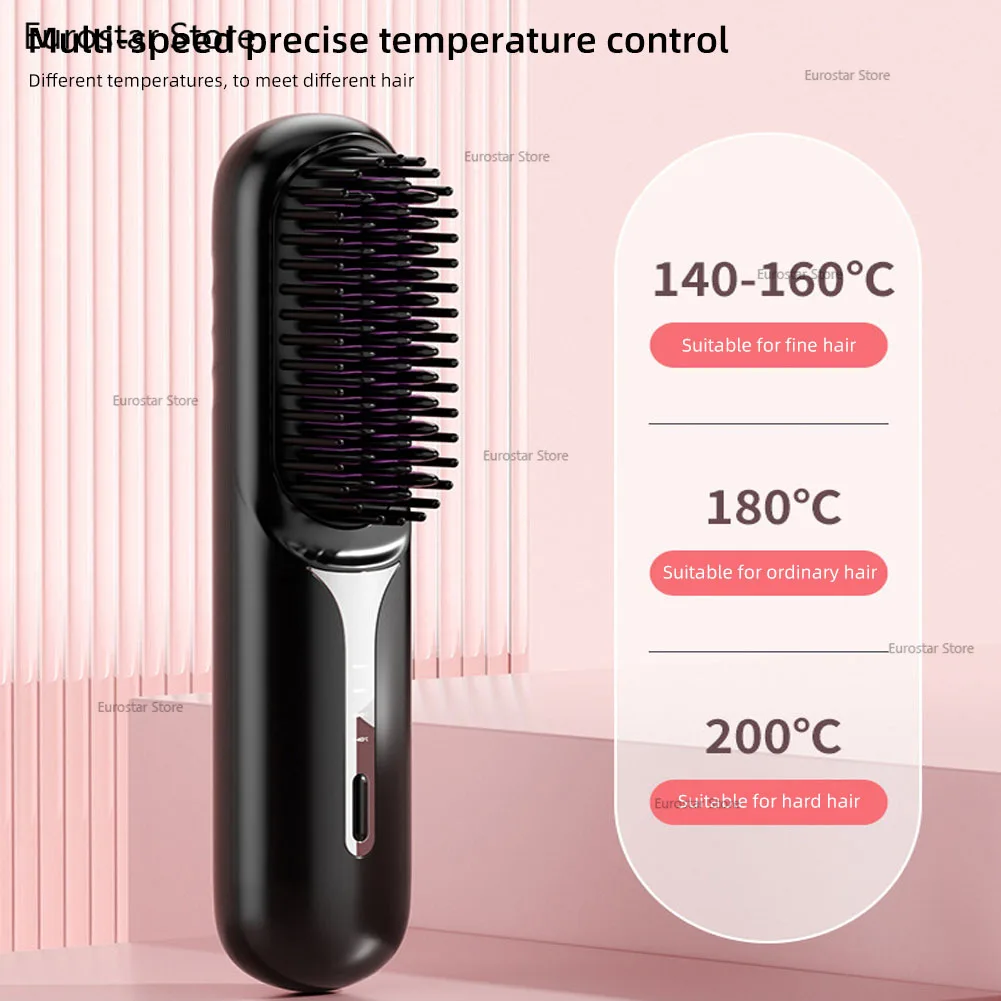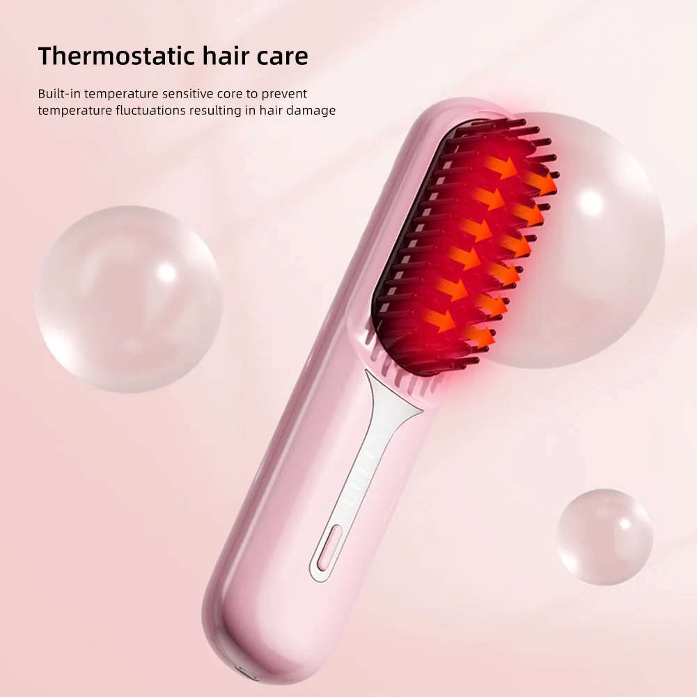 Nass- und Trockenhaarglätter, tragbarer Haarkamm, kabellose Haarglätterbürste mit schnell erhitzenden negativen Ionen für flauschige Locken
