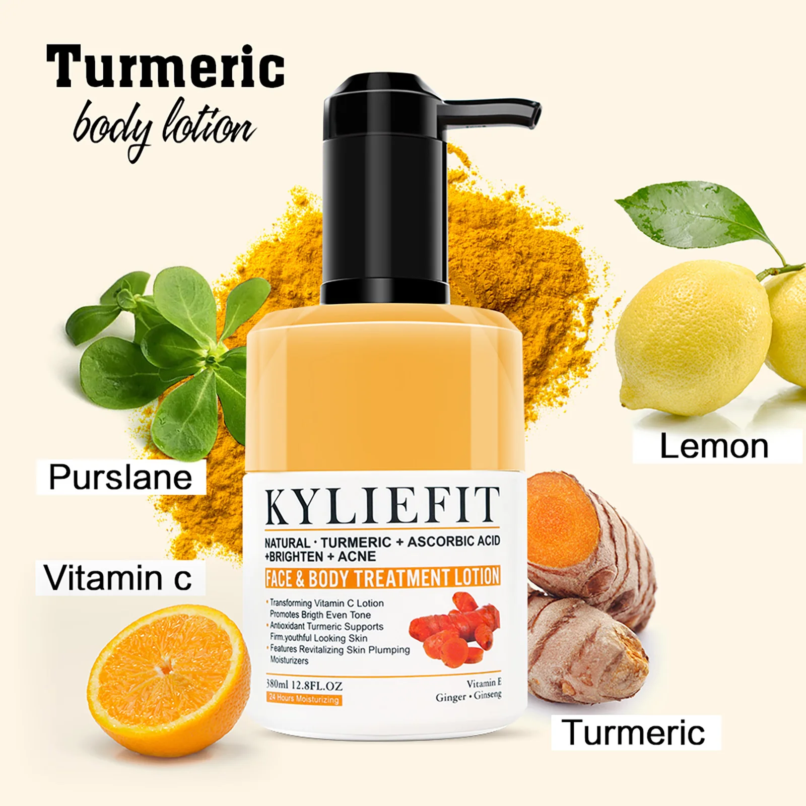 Natürliche Kurkuma-Bleaching-Lotion, reduziert Akne, dunkle und schwarze Flecken, feuchtigkeitsspendend, gleichmäßiger Hautton, für Gesichts- und Körpercreme