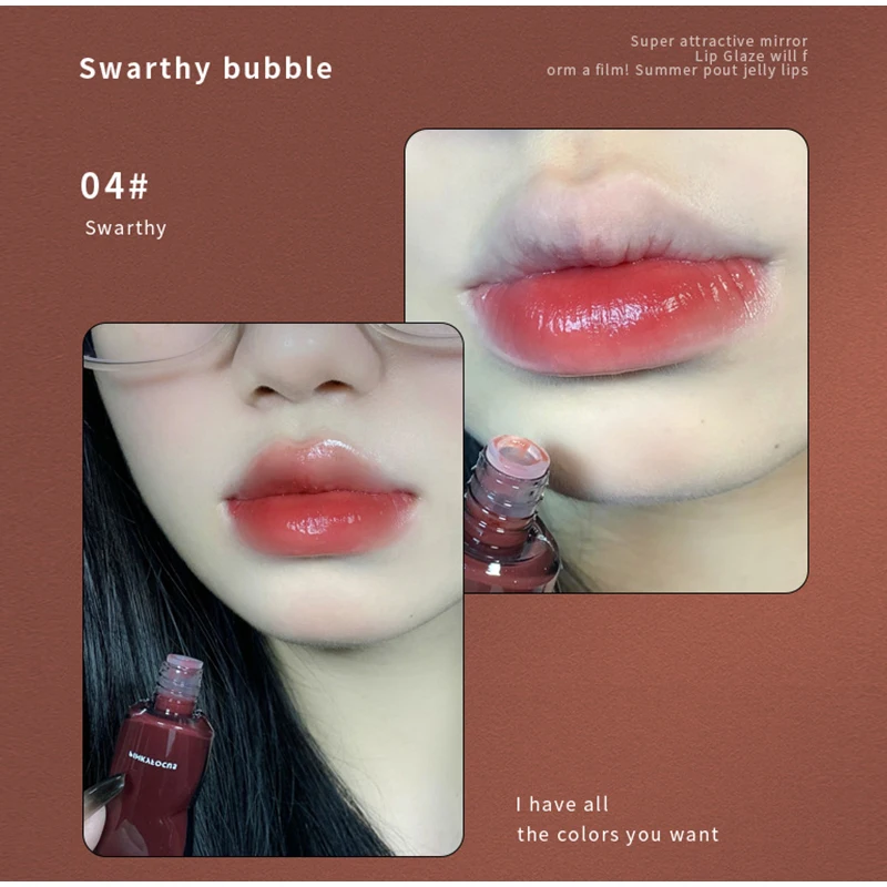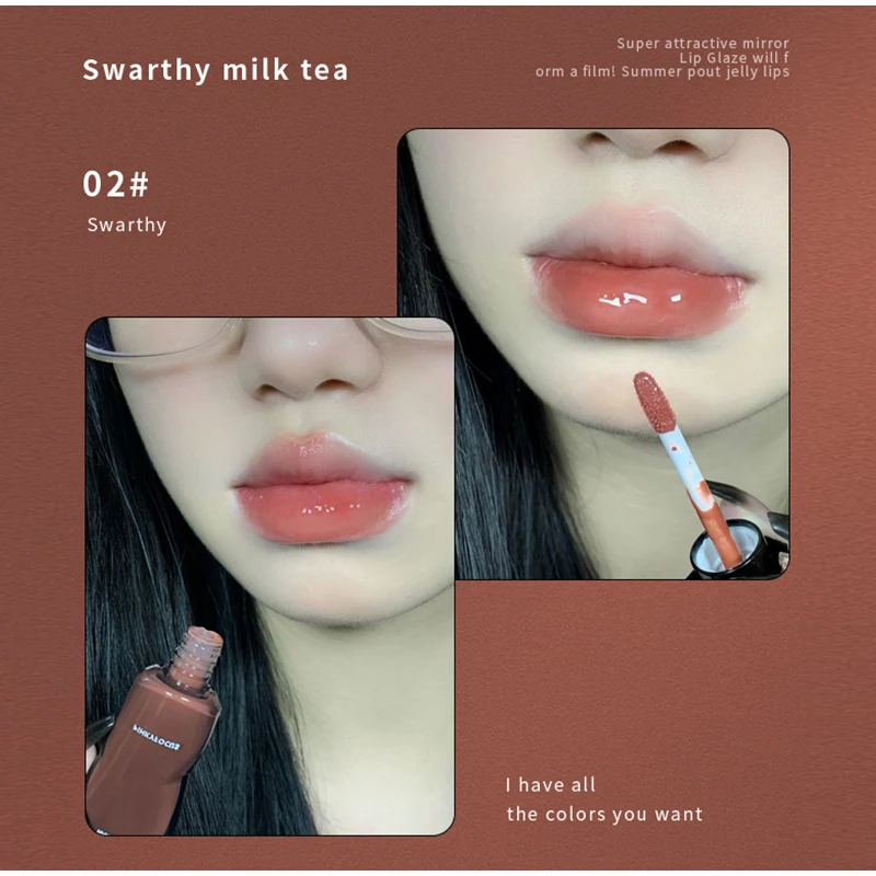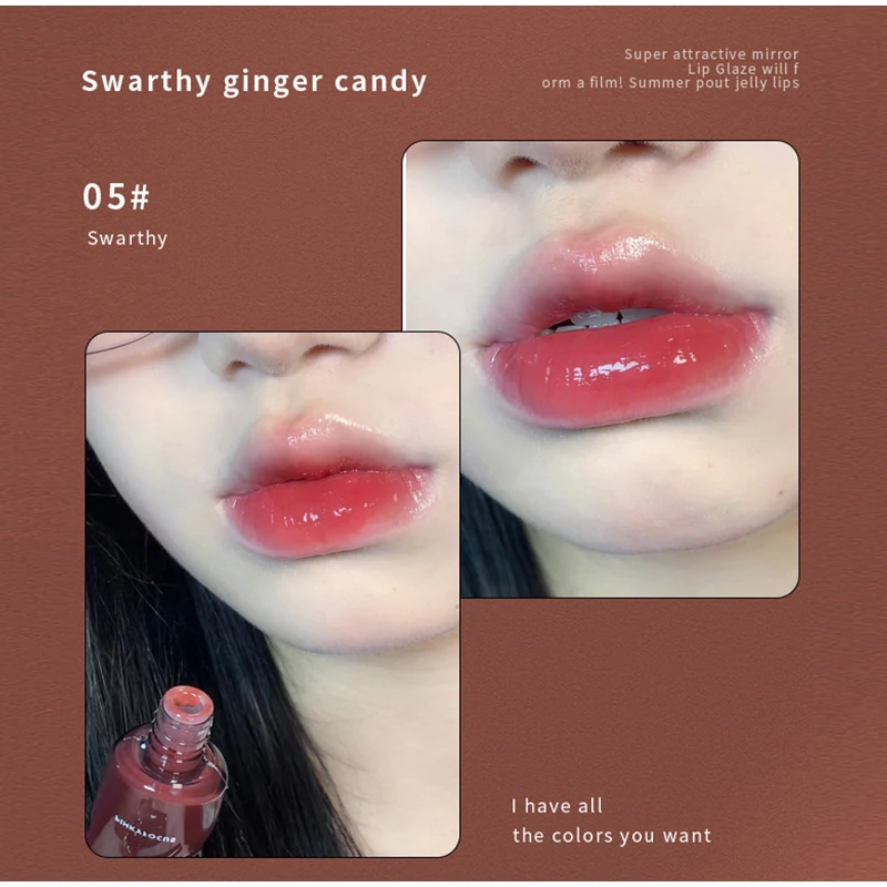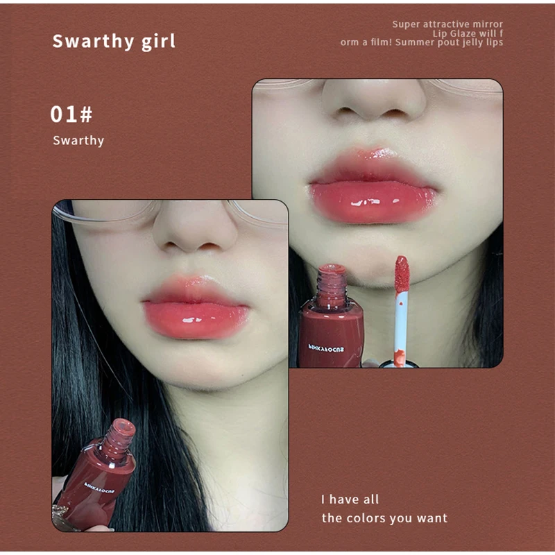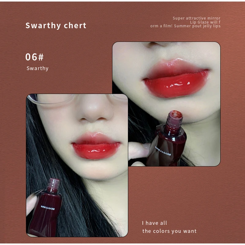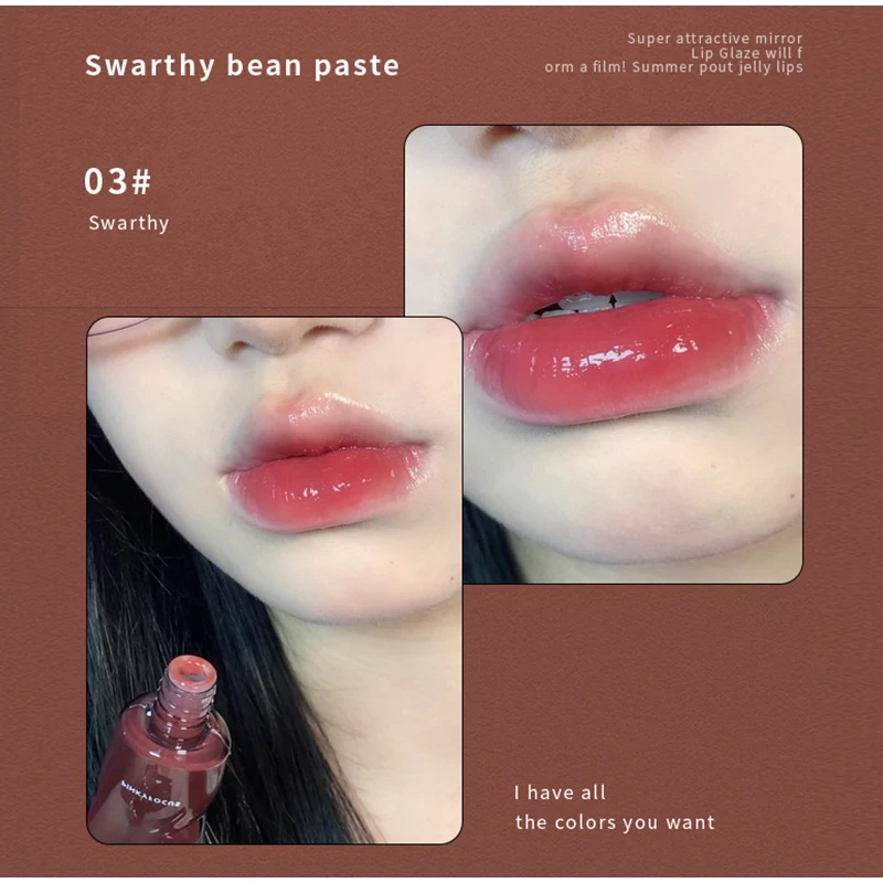 Spiegel-Lipgloss, Lippenglasur, transparentes Glas-Lippenöl, koreanische Kosmetik, wasserfester flüssiger Lippenstift, nacktes Braun, klare Tönung, Make-up