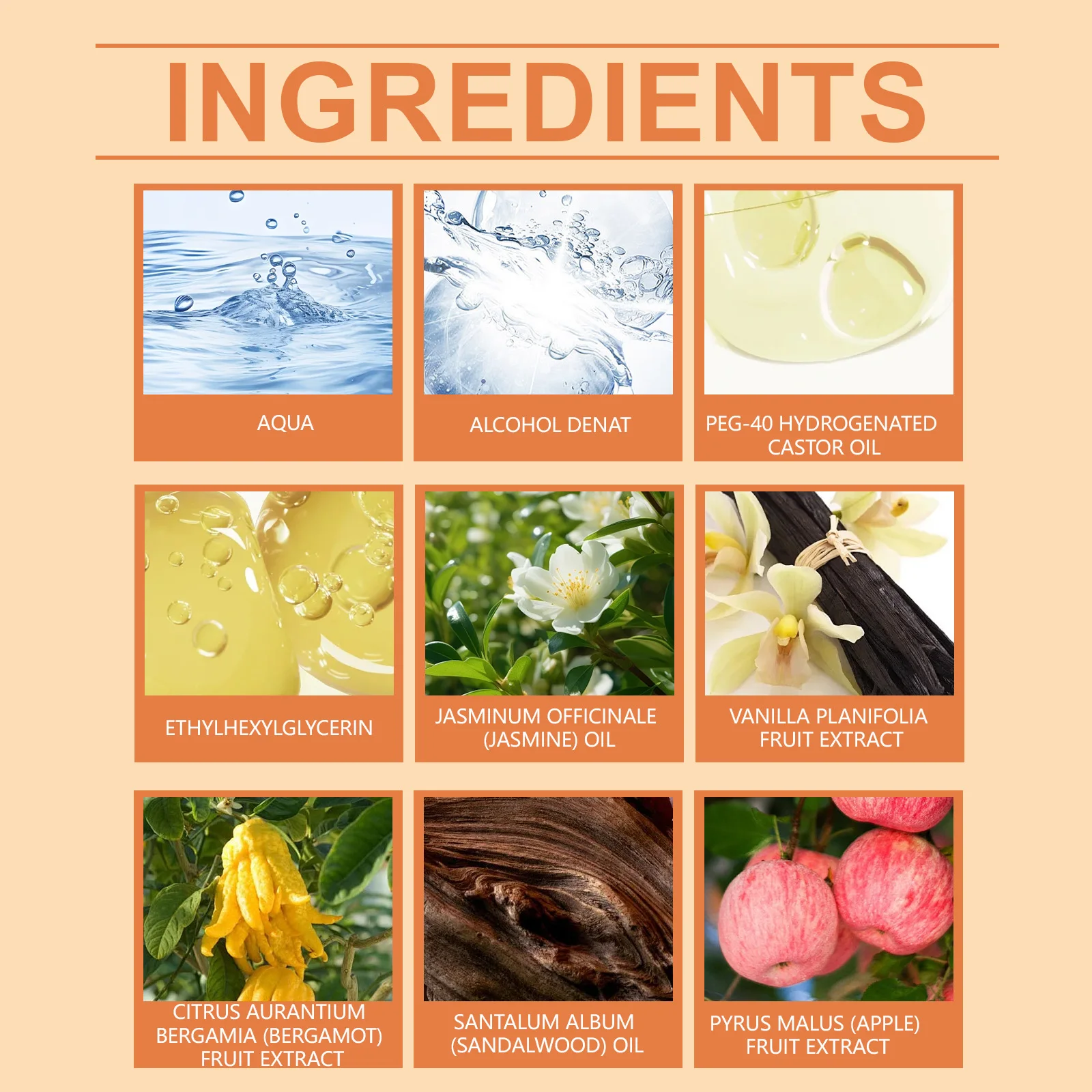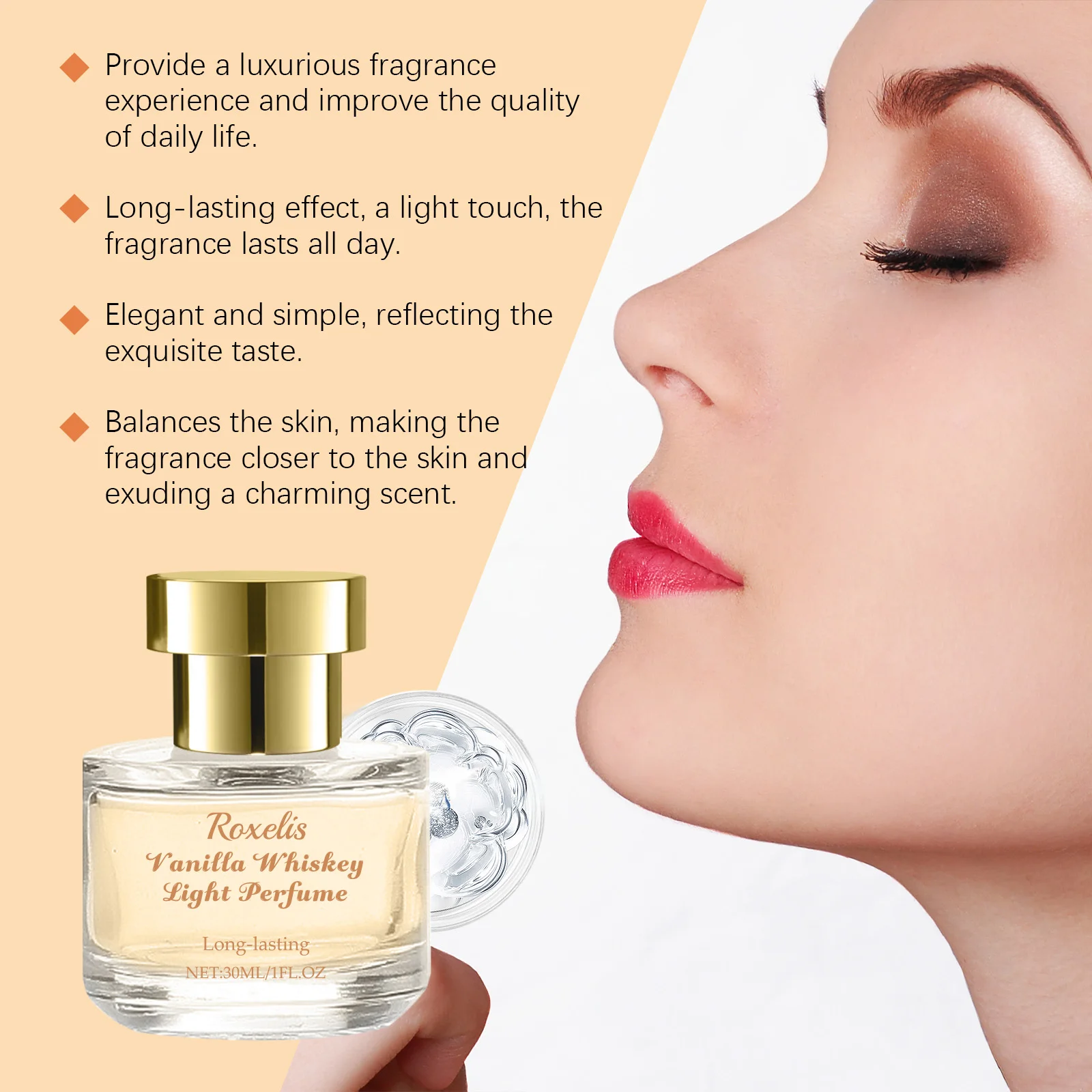Dieses Parfüm gemischt mit Jasminöl, Bergamottenfruchtextrakt und Apfelextrakt und liefert ein natürliches, süßes Aroma mit einer frischen fruchtigen Note. -