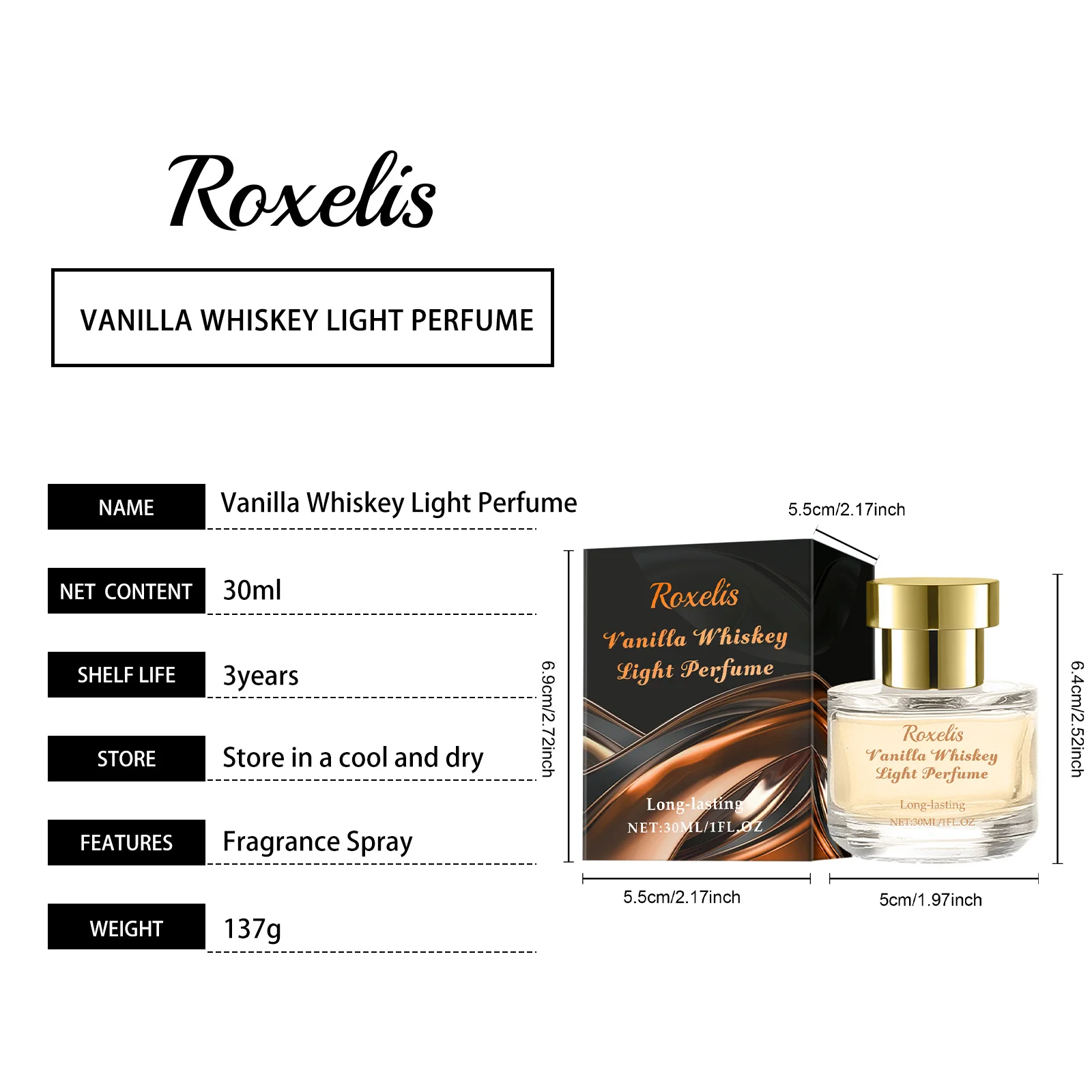 Vanilla Whiskey Eau de Toilette – natürlicher, frischer, fruchtiger Duft, langanhaltendes Parfümspray für Frauen und Männer, Geschenk für Paare