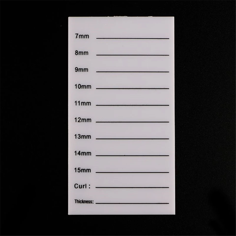 Vorteile: hochwertiges Material, schöner; kleine Form, bequemer zu platzieren; geschichtete Markierung, die hilft, die Länge der Wimpern zu unterscheiden.